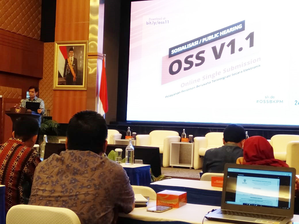 Dalam rangka persiapan implementasi Sistem Online Single Submission (OSS) versi 1.1, Badan Koordinasi Penanaman Modal (BKPM) melaksanakan Sosialisasi/ Bimtek/ Public Hearing Online Single Submission (OSS) versi 1.1 di Ruang Nusantara, Gedung Suhartoyo Lt. 1, JI. Gatot Subroto No. 44 Jakarta Selatan, Rabu (29 Juni 2019).