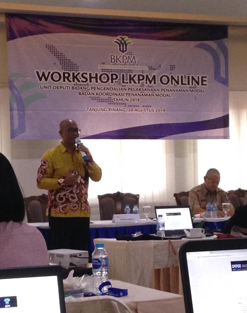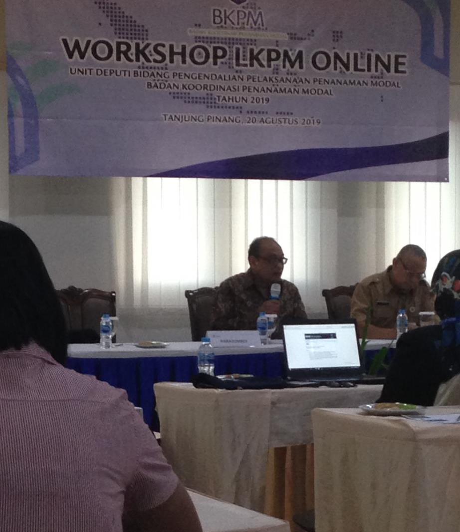 Badan Koordinasi Penanaman Modal (BKPM) melaksanakan Workshop LKPM Online Selasa, 20 Agustus 2019 di CK Tanjungpinang Hotel & Convention Center. Workshop terlaksana dalam rangka pelaksanaan Kegiatan Direktorat Wilayah I T.A. 2019 di bidang Pembinaan Penanaman Modal.