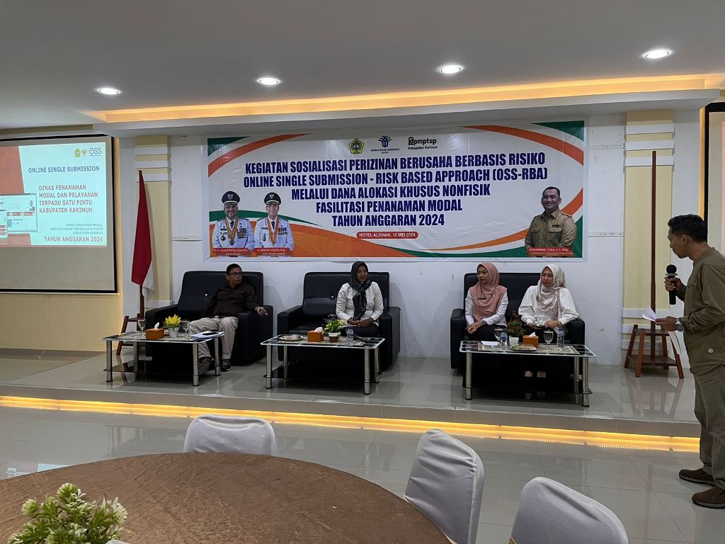 Dinas Penanaman Modal dan Pelayanan Terpadu Satu Pintu (DPMPTSP) Kabupaten Karimun menggelar Sosialisasi Perizinan Berusaha Berbasis Risiko atau Online Single Submission-Risk Based Approach (OSS-RBA) pada tanggal 15 Mei 2024 bertempat di Hotel Alishan. Tujuan dari acara ini adalah memberikan pemahaman tentang pentingnya pengurusan perizinan berusaha sektor usaha pariwisata, memberikan pemahaman tentang pemenuhan standar dan syarat-syarat penting yang harus dipenuhi sektor pariwisata sesuai dengan aturan yang berlaku. Diharapkan dengan acara ini para pelaku usaha sektor pariwisata dapat maju dan berkembang lebih baik lagi.