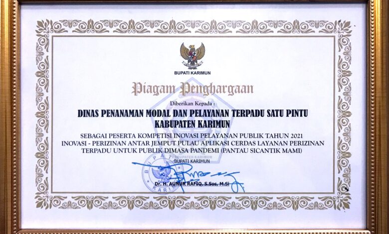 Read More »Bersempena Peringatan HUT Kab. Karimun ke 22 Tahun 2021, Dinas Penanaman Modal dan Pelayanan Terpadu Satu Pintu Kab. Karimun memperoleh…